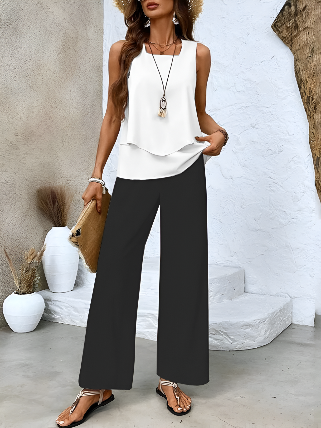 Top a Strati Chic – Il design a strati del top senza maniche aggiunge un tocco raffinato, perfetto sia per un look casual che per occasioni più eleganti.